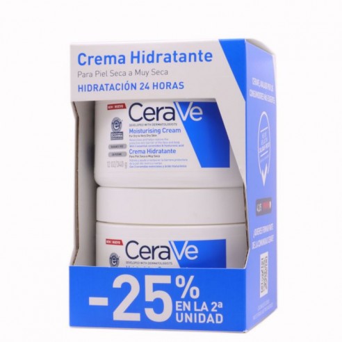La Crema Hidratante CeraVe es una crema hidratante rica, no grasa y de rápida absorción para pieles secas a muy secas del rostro y el cuerpo. Formulado con tres ceramidas esenciales y Ácido Hialurónico, actúa para retener la humedad y ayudar a mantener la barrera protectora de la piel. Desarrollada con dermatólogos, esta crema cuenta con la Tecnología patentada MVE que mantiene la piel hidratada durante 24 horas. Apta para piel seca a muy seca, piel irritada, con picor, o con tendencia atópica.\r\n\r\nBENEFICIOS\r\n