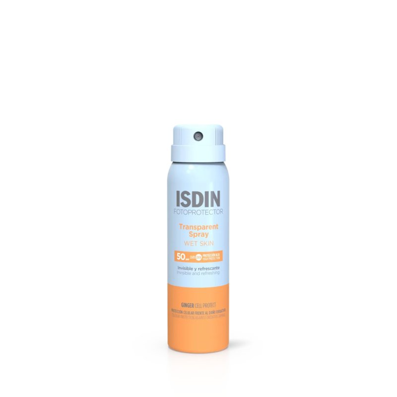 Protege tu piel estés donde estés con Transparent Spray Wet Skin SPF 50, el fotoprotector corporal en spray con alta protección UVB/UVA SPF50, transparente, fresco y de secado inmediato que puedes utilizar sobre piel húmeda. Con Ginger Cell Protect que aporta protección celular frente al daño oxidativo.\r\n