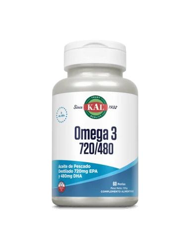 KAL (Solaray) Omega 3 720/480 es un suplemento alimenticio en perlas que aporta ácidos grasos Omega 3 esenciales, fundamentales para el correcto funcionamiento del organismo. Cada perla contiene una rica fuente de EPA (ácido eicosapentaenoico) y DHA (ácido docosahexaenoico), que son conocidos por sus múltiples beneficios para la salud cardiovascular y cerebral.