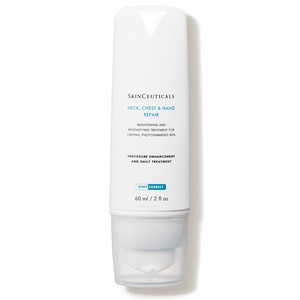 Corrige las manchas y arrugas de la piel en cuello, escote y manos. Complementa los procedimientos con láser fraccionado no ablativo y los tratamientos frente a la hiperpigmentación. Específicamente diseñado para las zonas del cuerpo que más acusan los daños medioambientales, Neck, Chest & Hand Repair tiene una doble acción: corrige el daño acumulado y las manchas gracias a los potentes activos despigmentantes, y estimula los mecanismos de reestructuración de la piel para combatir la flacidez, las arrugas y la pérdida de firmeza.