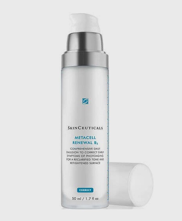 Skinceuticals Metacell Renewal B3 utiliza una emulsión acuosa que aporta una elevada concentración de niacinamida (vitamina B3), en combinación con un concentrado de tripéptidos reafirmante y un 15 % de glicerina pura para luchar contra los signos prematuros del fotoenvejecimiento.\r\n\r\nLos signos del fotoenvejecimiento aparecen con distinta intensidad según las características biológicas de la piel, el estilo de vida, la situación geográfica, la rutina de protección solar y el régimen de cuidado de la piel, y tienen un efecto multiplicador, que genera un aspecto de piel envejecida de forma prematura.\r\n\r\nEsta emulsión de uso diario y efecto global corrige visiblemente los signos del fotoenvejecimiento prematuro favoreciendo la renovación celular. También ayuda a aclarar y unificar el tono, mejorar la apariencia de las arrugas y potenciar la elasticidad.\r\n