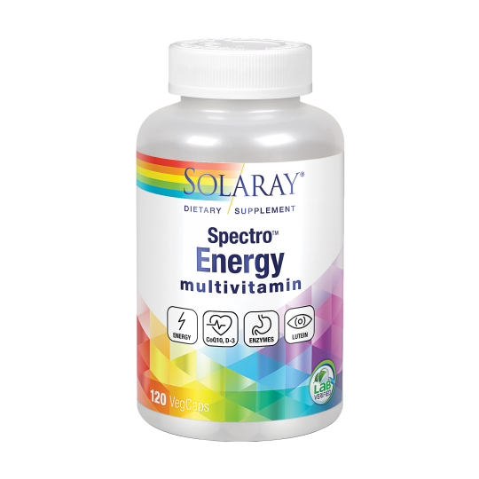 La fórmula Spectro Energy, 100% vegetal, aporta todas las vitaminas y minerales, incluyendo los coenzimas de las vitaminas y minerales quelados. También incorpora importantes antioxidantes como la luteína, el licopeno, la CoQ10 y el ácido alfa lipoico, así como bioflavonoides, enzimas digestivas y pectina, alimentos ricos en clorofila y complejo herbario. Los nutrientes de Spectro Energy! aportan un apoyo nutricional para unos renovados niveles de energía y un estilo de vida activo.\r\n\r\n \r\n\r\n \r\n\r\n \r\n\r\n \r\n\r\n
